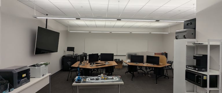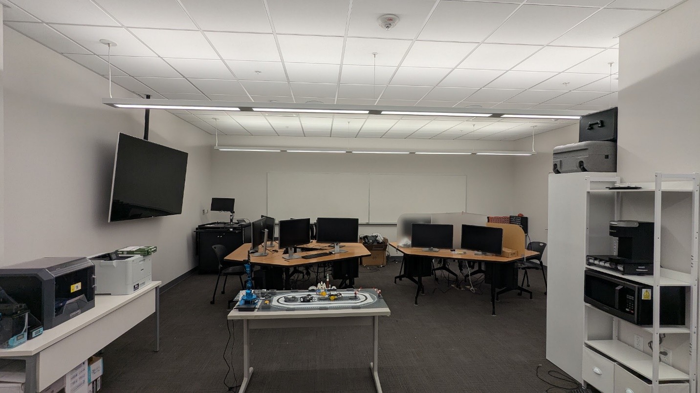Directed by Dr. Amir Jafari and Dr. Arup Bhattacharya, the Living Lab is a cutting-edge experimental testbed designed to advance research in personalized comfort, occupant behavior modeling, and energy-efficient operations in shared office environments. It facilitates seamless interaction between occupants, IoT-enabled devices, and centralized HVAC and lighting systems to explore behavior-driven building operations and develop intelligent control strategies. The testbed to create our energy-smart office lab is the CM graduate students’ office at Louisiana State University’s main campus. This office includes 24 cubicle workstations and a total area of 1,000 square feet.