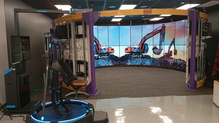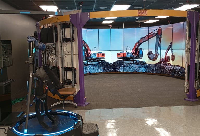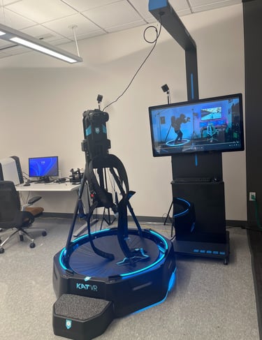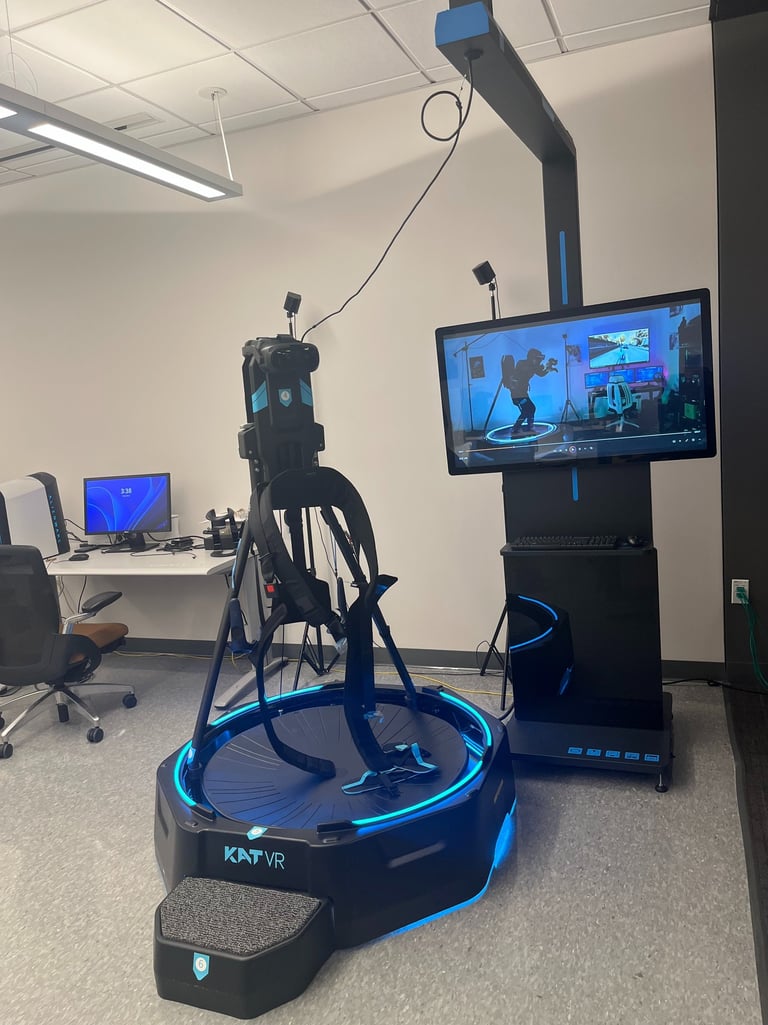 To enhance realism and interactivity in our virtual reality (VR) environments, the SPICE Lab is equipped with the Kat VR Mini S treadmill—an omnidirectional locomotion system that allows users to walk naturally in virtual spaces. This technology supports our research on immersive construction workforce training, and simulation-based education. By integrating the Kat VR system into our VR-based training modules, we enable more realistic, full-body engagement that strengthens spatial awareness, task immersion, and physical fidelity in simulated scenarios. The treadmill is actively used in both our research experiments and workforce development initiatives.
