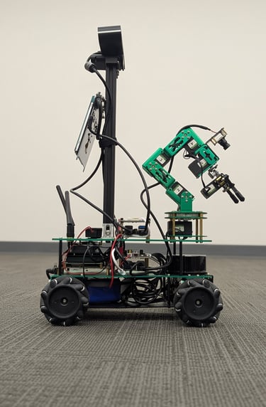 Our lab utilizes the Rosmaster X3 Plus—nicknamed Salt—a ROS-enabled mobile robot platform designed for advanced indoor navigation, real-time sensing, and AI-driven decision-making. Compact and versatile, Salt serves as a core testbed for developing intelligent autonomous behaviors in structured environments. Equipped with a powerful Jetson Nano onboard computer, Salt supports ROS and ROS 2 frameworks for seamless integration of sensors, control algorithms, and perception modules. The platform features an array of sensors, including a 360-degree LiDAR, ultrasonic and infrared rangefinders, a camera module, and IMU, enabling simultaneous localization and mapping (SLAM), obstacle avoidance, and dynamic path planning. Its Mecanum wheels allow for omnidirectional movement, making it well-suited for complex indoor layouts and tight navigation scenarios.